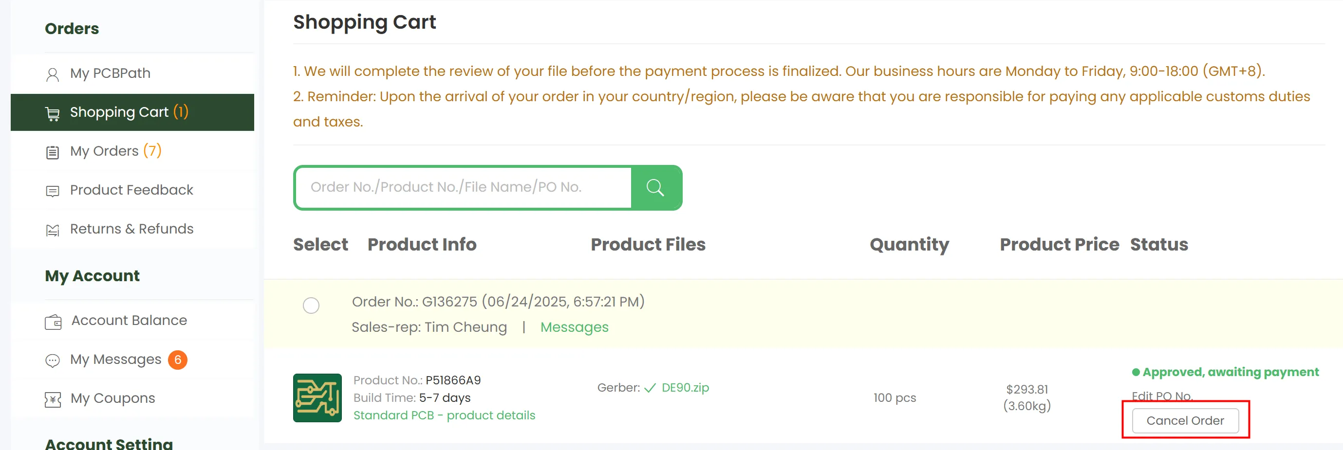 Reach out to your dedicated sales representative via the My PCBPath section in your account, where their contact details are listed.