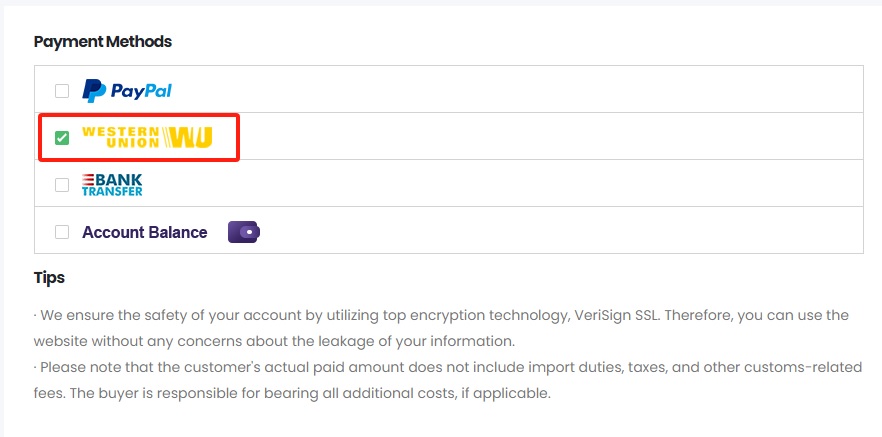 - Select Western Union at Checkout: On the checkout page, choose Western Union as your payment method.