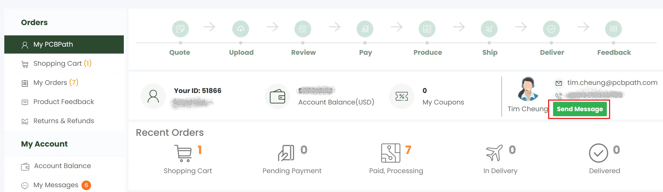Log in to your PCBPath account and navigate to My PCBPath in the upper-right corner.