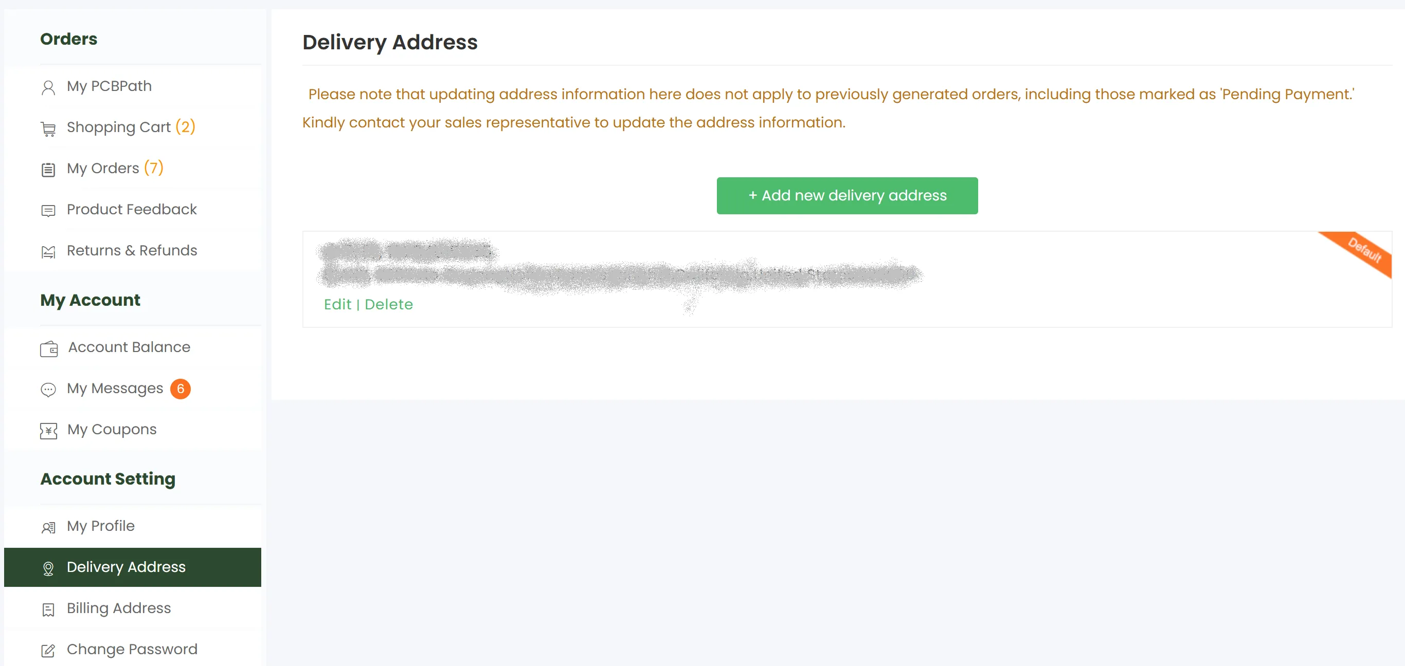 Pro Tip: Setting a default address saves time during checkout, especially for frequent PCB orders.